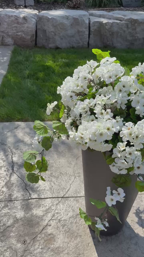 Styling your front porch just got easier. These ready-to-go bundles include a mix of full geranium bushes and trailing hanging stems designed to give your planter a full, lifelike look with minimal effort. Each stem features multiple pliable branches and florals, and all pieces are UV-protected to help reduce fading outdoors.